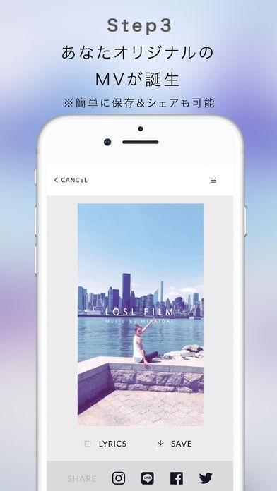 「LOSLFILM」は、自分のちょっとした日常をカメラで撮影することで簡単にミュージックビデオを作成可能なアプリになります。収録されているHIRAIDAI氏による5種類の楽曲の中から好きなものを選択して15秒間の動画を撮るだけで簡単に作品を制作することが可能となっていて、SNSへ投稿することもできます。