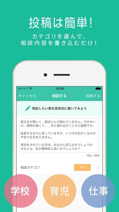 相談するカテゴリを1つ選んで、相談内容を書くだけ!