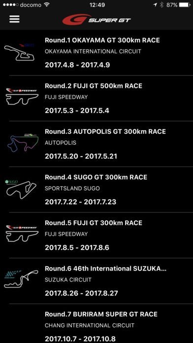 国内最高峰ジャンルの一角である「SUPER GT」シリーズをより楽しむための公式アプリです。レース開催日にはライブ情報としてそれぞれの順位やラップタイムなどを見ることができます。