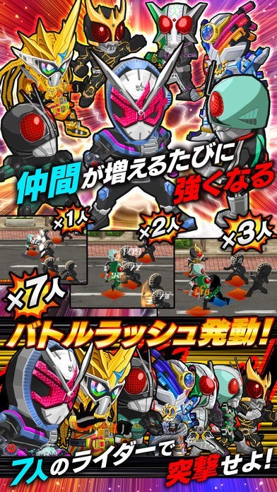 App Storeより引用ー ライダー結集!7人揃えて突撃せよ! ー