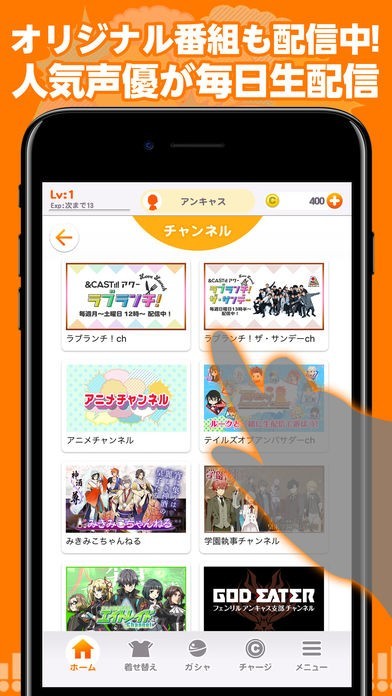 ゲームやアニメを声優が解説したりや人気キャストの生放送番組が見れる!