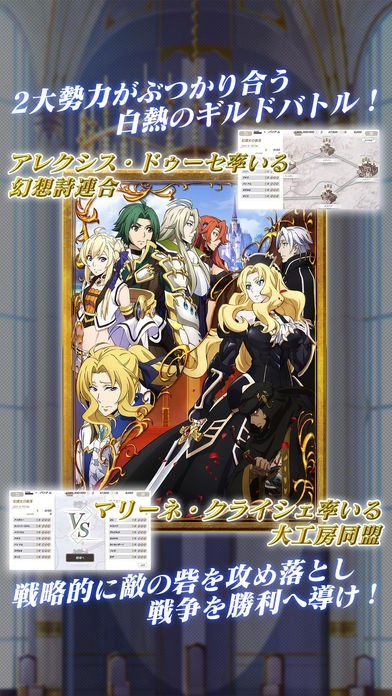 大人数で争うギルドバトル機能を搭載しています。幻想詩連合と大工房同盟のどちらかに所属することで参加可能。育成したパーティで敵の砦を攻め落とすことで、自陣の勝利に貢献することができます。