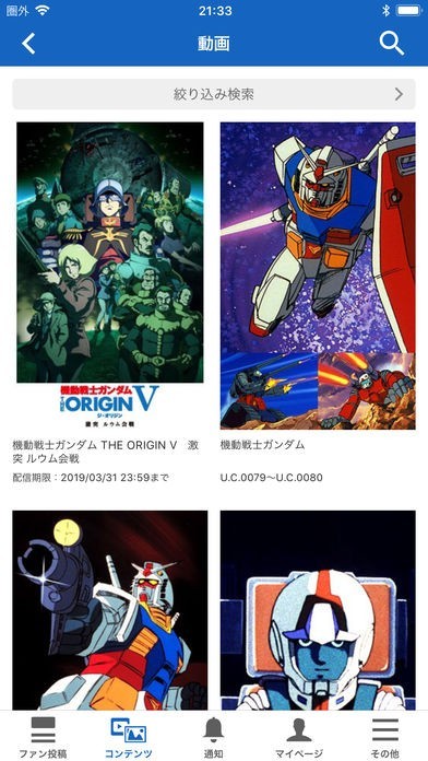 ガンダムファンクラブではテレビシリーズ全作品をはじめとして、映画、OVAのガンダムシリーズの作品が見放題となっています。またガンプラの閲覧機能などコンテンツも多数用意されています。