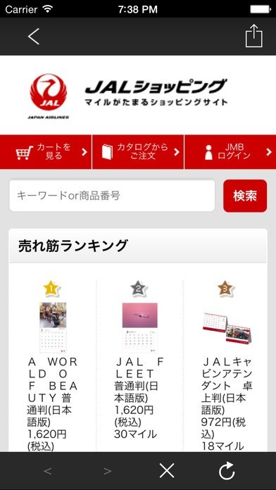 「JALショッピング マイルがたまるショッピングアプリ」にはローテーションバナー機能が付いています。 アプリユーザーだけのキャンペーン情報が届くため、お得なショッピングをしたいという時に便利な機能です。 商品を探したい時に便利なのがメニュー機能です。 様々なカテゴリーを用意しており、目的の商品を探しやすくなっています。 JALオリジナルで探すとファッションやスーツケースベルトなど空の旅に便利な商品が見つかります。 ショッピングするとマイルが貯まる機能も付いており、一定以上貯めれば特典航空券や商品に交換できるようになります。 国内旅行や出張などで良くJALの飛行機に搭乗するという方にも便利です。