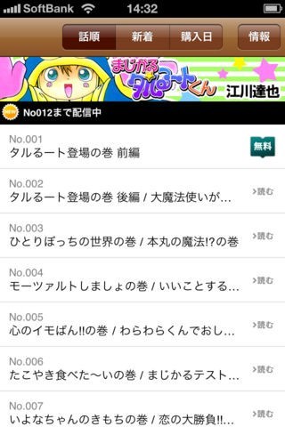 App Storeより引用ちょっぴりおまぬけな小学生・江戸城本丸は、偶然唱えた魔法の呪文で、おちこぼれ魔法使いのタルるートを呼び出してしまう。友達になった二人は、タルるートの魔法で今日も大騒ぎを巻き起こす!本丸はタルるーとの魔法に頼り切るのではなく、魔法を利用した特訓によって自ら成長してゆく。服や壁が透視出来る「見Hん」など、小学生のエッチ心を激しくくすぐる魔法も多数登場しました(^^)