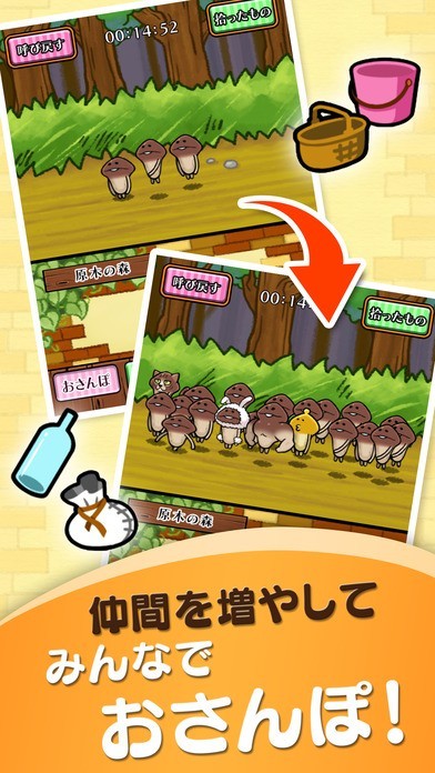 今度の「なめこ」は歩くし食べる!放置ゲーの楽しさもパワーアップ!