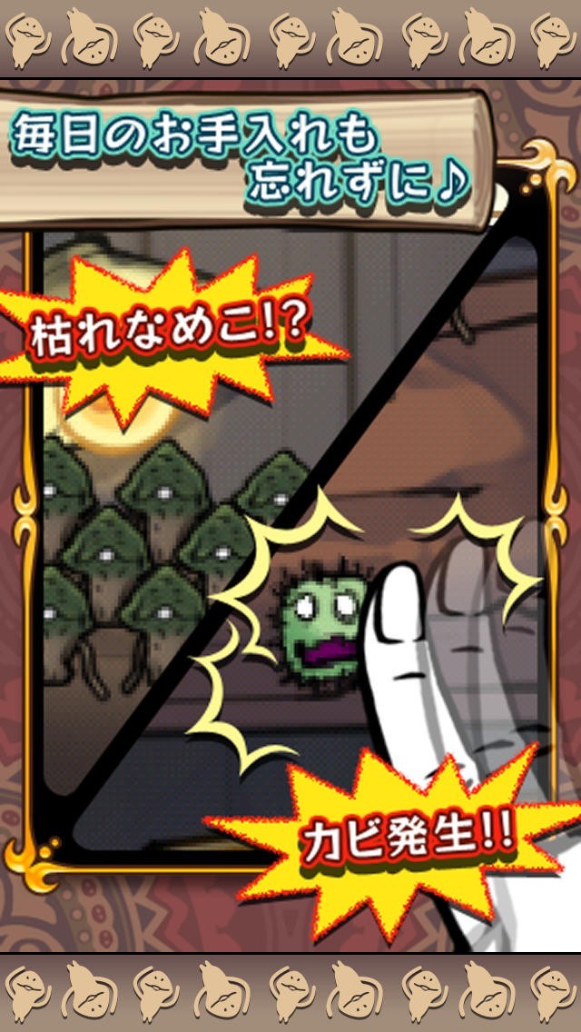 おさわり探偵 なめこ栽培キットでは、様々なナメコを育成し、特別な図鑑を作成する狙いがあります。ナメコを育てている最中には、ユニークな発想の背景画像をGET出来ます。 ナメコをゆっくりと手入れしながら、立派に育てて行けます。新たな機能もいっぱい追加されており、充実した作品へと上手く完成しています。芽が出て来たナメコを指で滑らせて、素早く収穫して行き、後はオリジナルの図鑑へと仕上げて行くだけです。それまでにあった図鑑だと、ナメコの収穫総数や、短い説明文関連のデータな載せられているだけでした。このゲームからは、新しく「裏」が付け加えられた為、それぞれのナメコ達の特技な性格に至るまで、詳細情報がぎっしり掲載されています。