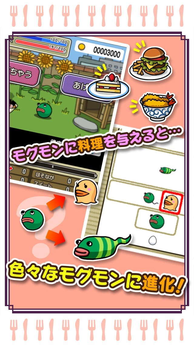"モグモン"に料理を与えて進化させる、ゆるーい育成ゲーム!