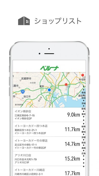 近隣ショップをGPSを利用して探すことができ、お店の情報を見ることができます。