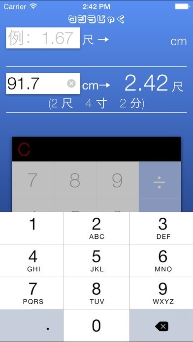 和服を仕立てるときの単位である「鯨尺」とメートル法を単位変換することができるアプリ。!
