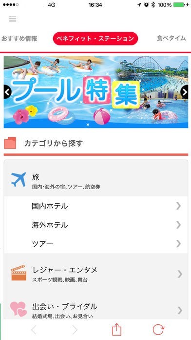 福利厚生に特化したアプリで、旅行などの情報を知ることができます。