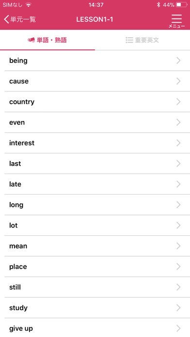 一覧表示で知りたい英単語などを見る事が出来るので、辞書などを持ち歩かなくても手軽に勉強が出来ますよ。また、文字なども見やすく画面もスッキリしているので分かりやすいです。
