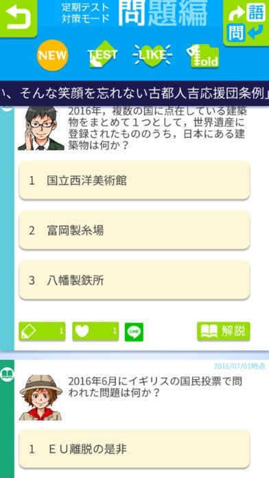 App Storeより引用本アプリは、定期テストや入試で出題される時事問題の対策ができるアプリです。