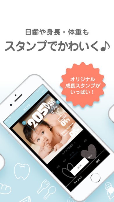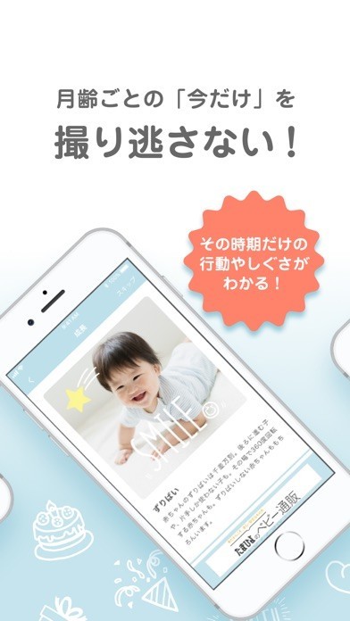 赤ちゃんの貴重なシャッターチャンスを教えてくれて、お題に添って撮るだけで成長記録を作ることができます。