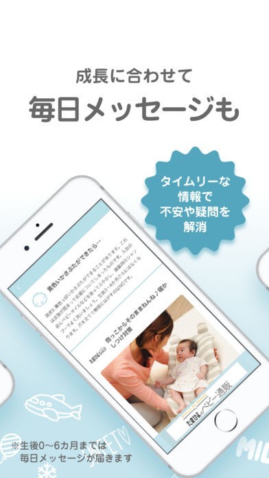 赤ちゃんの特定の時期にしか撮影できない写真のお題を提供してくれたり、お役立ちメッセージを受け取ることもでき便利です。