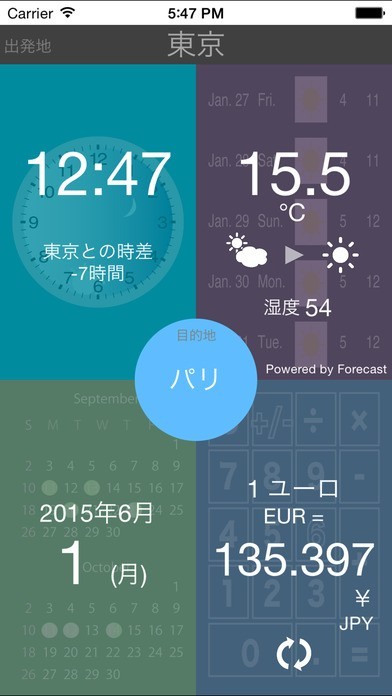 App Storeより引用「TravelOn」は、旅行先で便利に使えるアプリです。旅行先の時間、天気、レート、祝日、出発地との時差もすぐにチェックできて、通貨 換算もとっても簡単。世界580都市に対応しています。