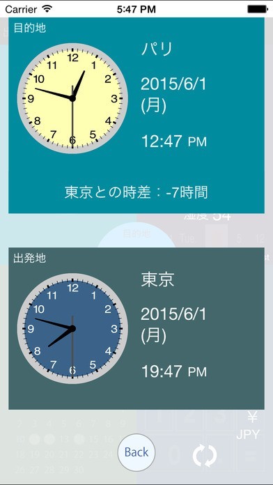 ・旅行先の時刻と出発地との時差が一目でわかります