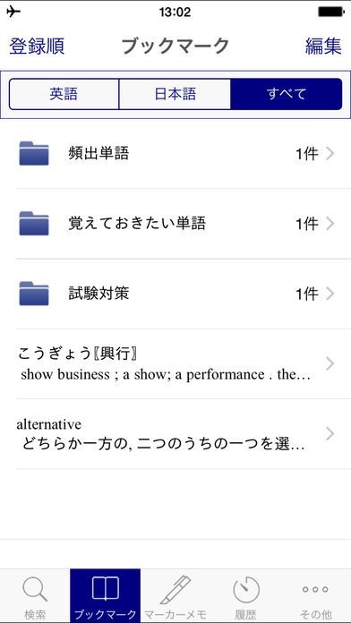 このアプリでは、「ブックマーク」や「履歴」を使って、単語の学習および復習をすることが出来ます。めんどうな検索の手間を省ける為、効率良く学習したい時におすすめです。