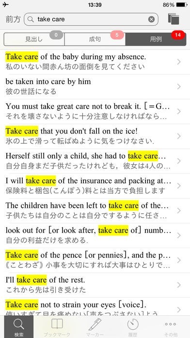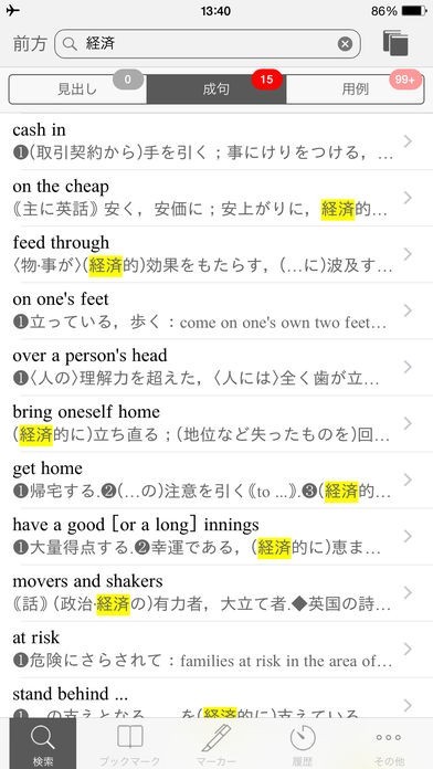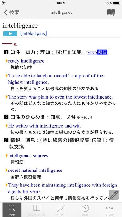 マーカーメモ機能を使えば、紙の辞書にマーカーで印をつけるように気になる部分を目立たせることができるので自分仕様の辞典になっていきます。マーカーは3色の蛍光色が用意されています。