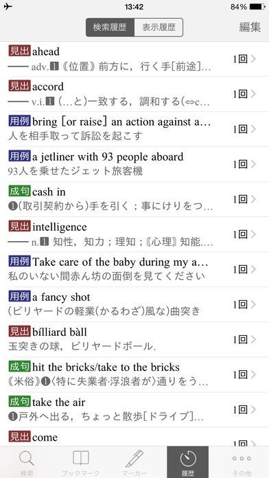 ブックマーク機能で複数のフォルダを作って単語を分類することができます。なかなか覚えられない単語や試験に出やすい単語などを分類してまとめておくと効果的に復習できます。
