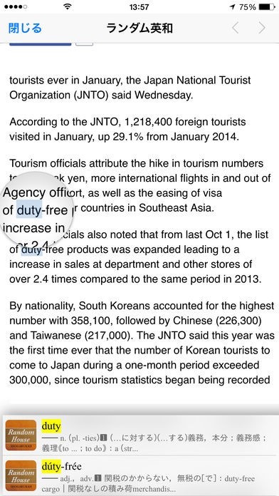 1字入力する度に候補となる単語が表示されるインクリメンタルサーチに対応しているので、全ての文字を入力しなくても手軽に検索することができ、時間をかけずに調べられます。