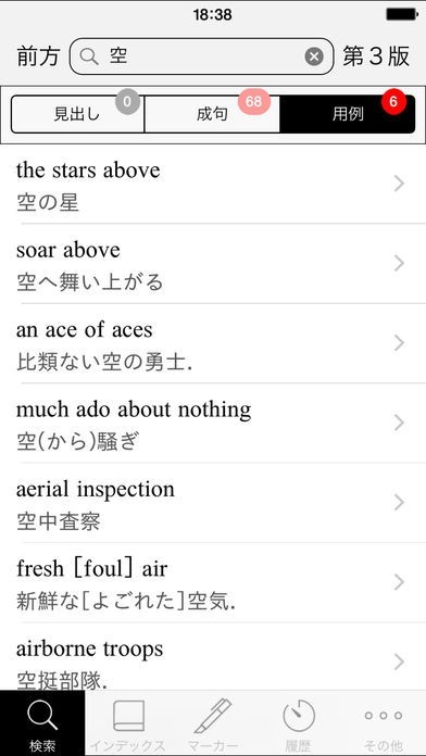 成句や用例の日本語訳が検索できる