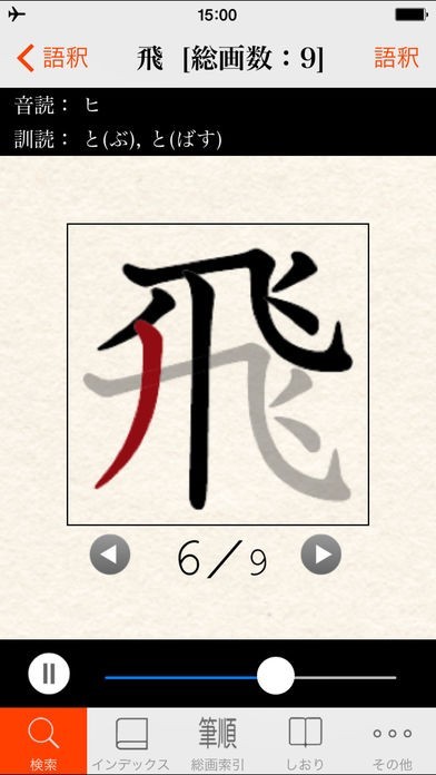 筆順アニメーションや総画数検索など漢字に関する機能が充実