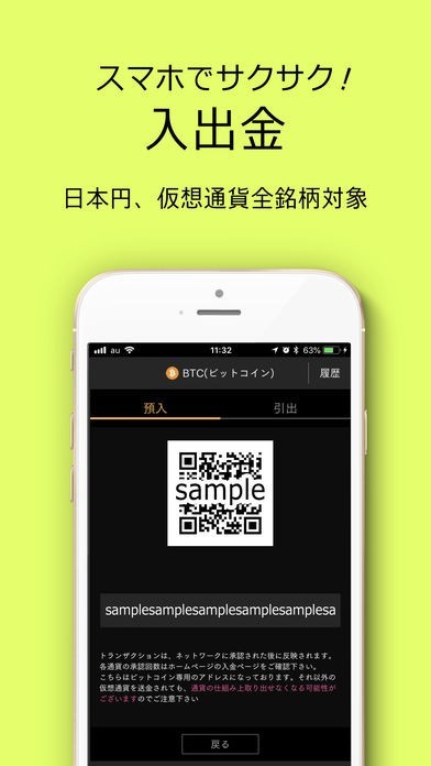 日本円および取り扱っている全仮想通貨の入出金がスマホで簡単にできます。仮想通貨はQRコードによって24時間いつでも送金と受け取りが可能です。コールドウォレットとマルチシグによってハッキング対応も万全です。