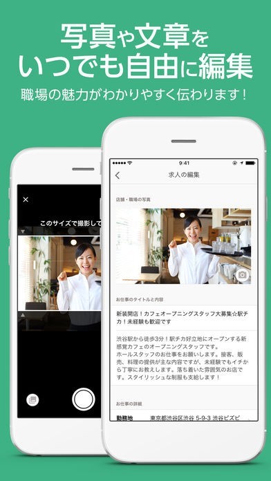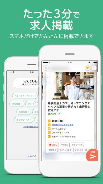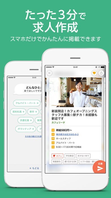 対応している求人検索エンジンであるスタンバイやYahoo!しごと検索に載せることができる求人情報をスマートフォンで作成することができるので、すぐに募集を開始できます。