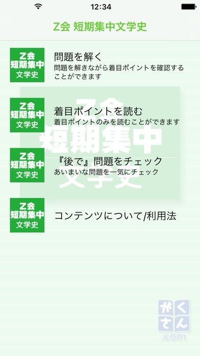Z会短期集中文学史のスクリーンショット