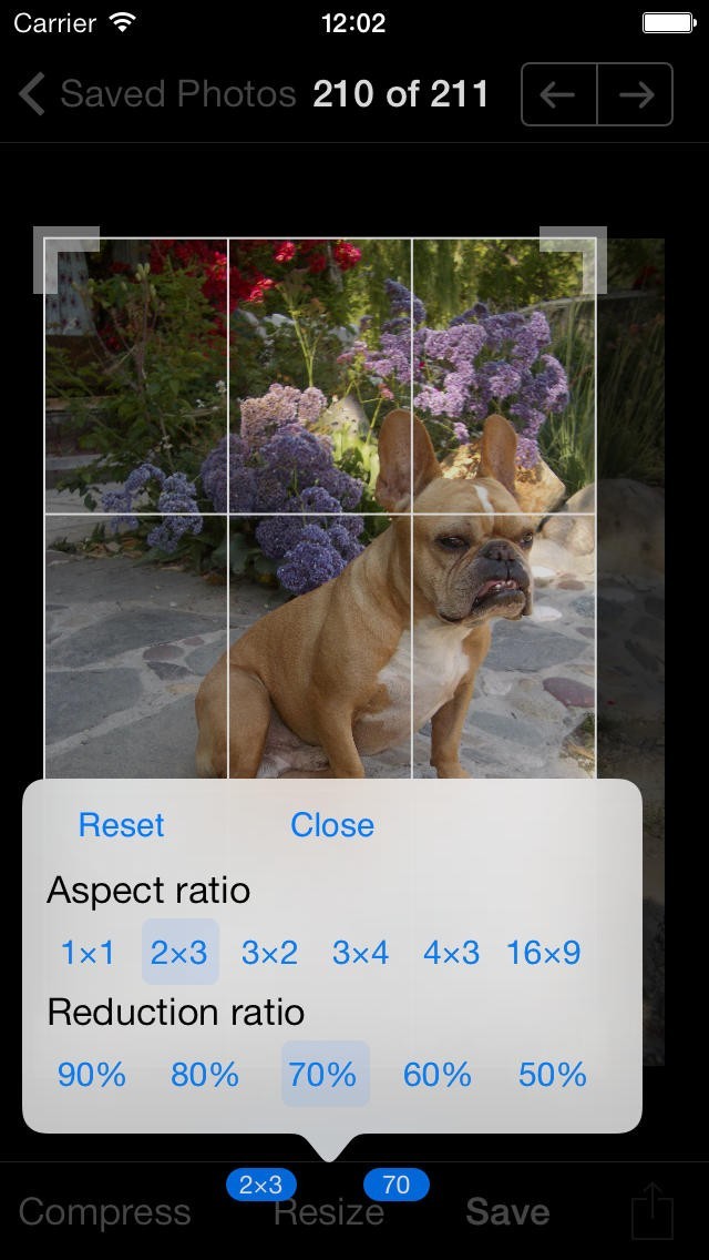 簡単リサイズ!複数枚写真を選択して、一気に圧縮することが可能!
