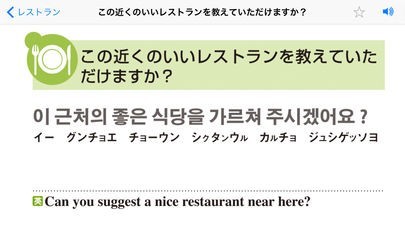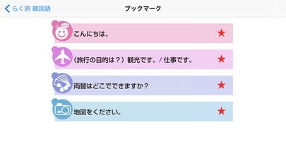 ここでは他のアプリには無い、トラブル時に知っておきたいフレーズを学ぶことが出来ます。特に、一人で韓国に行かれる際には、是非一度目を通しておかれると良いでしょう。