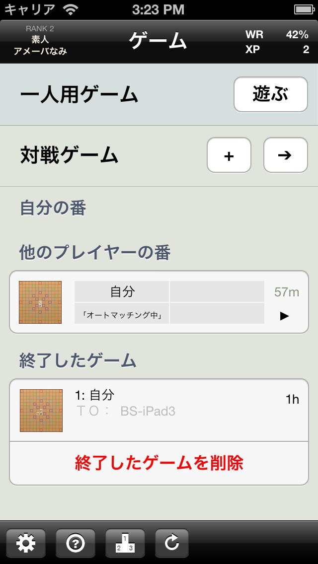 1。アプリ初回起動時に、Game Center へのサインイン画面か、新しいGame Centerアカウントの作成画面が表示されます。一人用ゲームにはGame Centerを使わずに遊べます。