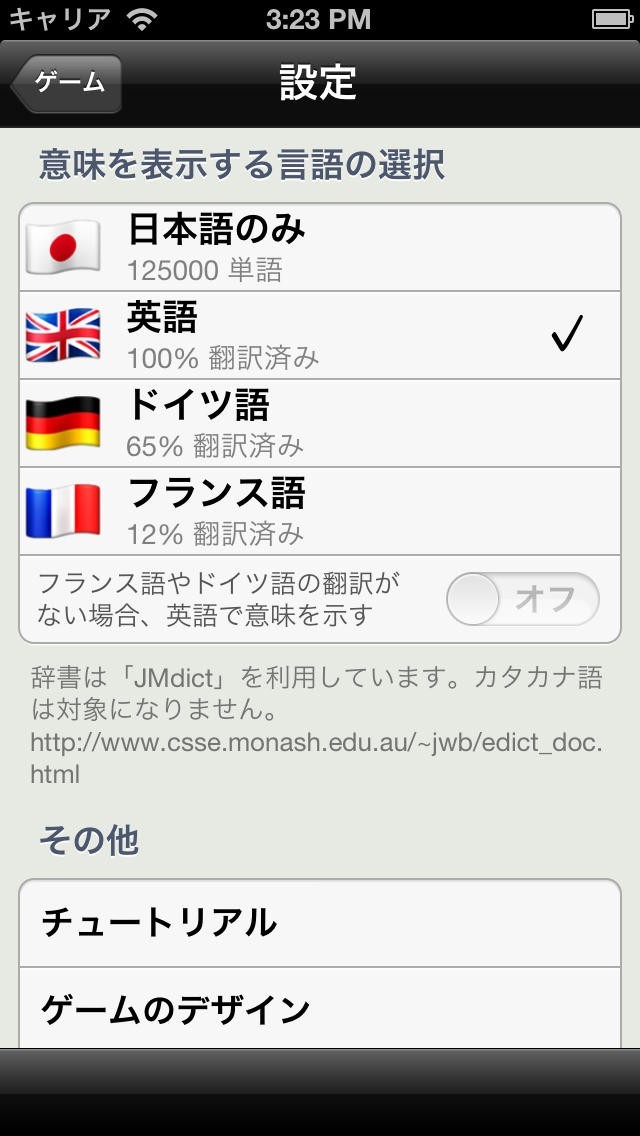 このアプリは、フリーの日本語の辞書であるJMdictが使用されています。