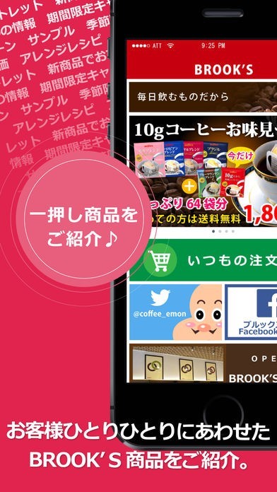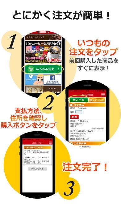 BROOK'Sのコーヒーや商品、グッズをスマホで簡単に注文できるショッピングアプリです。注文して配送まで、指でタップするだけで簡単にできるので通販初心者も安心して利用できます。