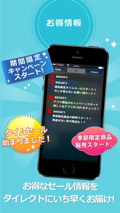BROOK'Sで使えるお得なクーポンやセール情報がアプリに配信されるので、BROOK'Sの通販が簡単でお得に利用できます。最新情報も配信されるため、自分で調べる必要はなく便利です。