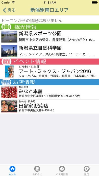このアプリでは、新潟市街を中心に観光情報や最新イベント情報、オススメ店舗情報をお届けします。