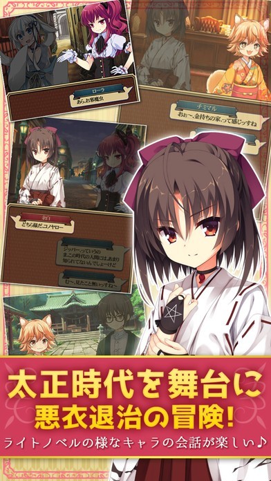 美少女キャラクター達が多数登場し、謎たっぷりのストーリーと大正風ロマン活劇を楽しむことができます。指先だけで遊べる独自のバトルシステムを用意しており、隙間時間に手軽にプレイできるのも特徴です。
