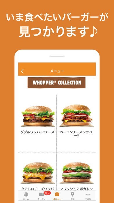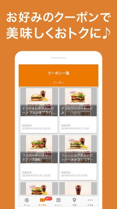 バーガーキングのメニューやお得なクーポンか使えるのでとても便利なアプリです。