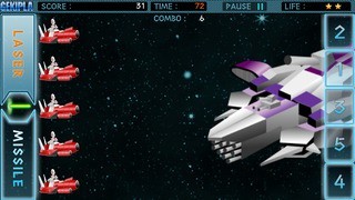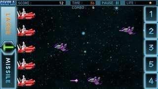 画面右側の砲台ボタンを押し、レーザーで敵機を撃墜せよ