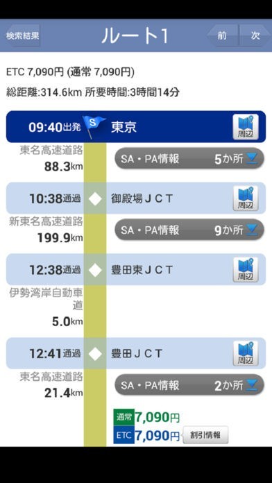 旅行前にどのルートで行くか決めておきましょう。このアプリではサービスエリアの情報もわかるのでどこのサービスエリアで停まるか決めておくと食事や休憩する場所に悩む必要もありません。