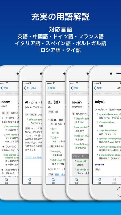 英語、中国語、ドイツ語、ロシア語など10カ国語が収録された辞書で、一つの単語を言語ごとに横断検索ができて便利です。