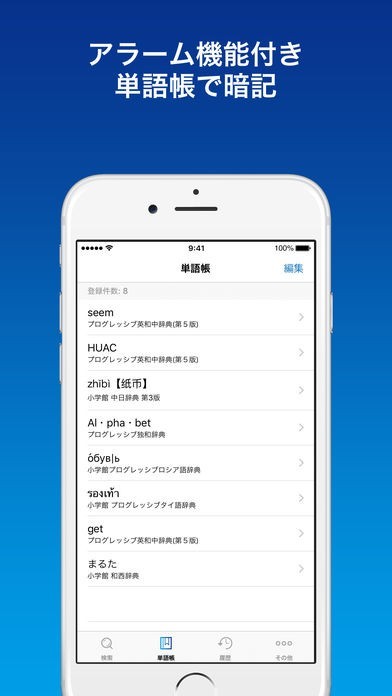 単語を調べるだけでなく、暗記に使って知識を定着させましょう。重い辞書を10冊持ち歩くのは大変ですが、携帯さえあればいつでもどこでも10ヵ国語の辞書を引くことができます。