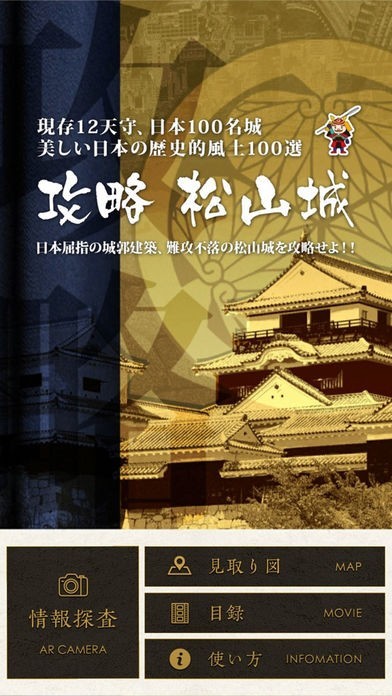 App Storeより引用「攻略 松山城」は現存12天守でもある松山城をより深く楽しみ、学びながら観光を促すアプリです。