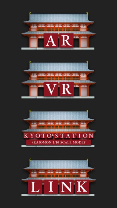 「KYOTO STAION」については、京都駅烏丸口にある羅城門1/10スケール模型の前で、タイトル画面画像をトリガーに羅城門を通した平安京の360度画像を疑似体験できます。