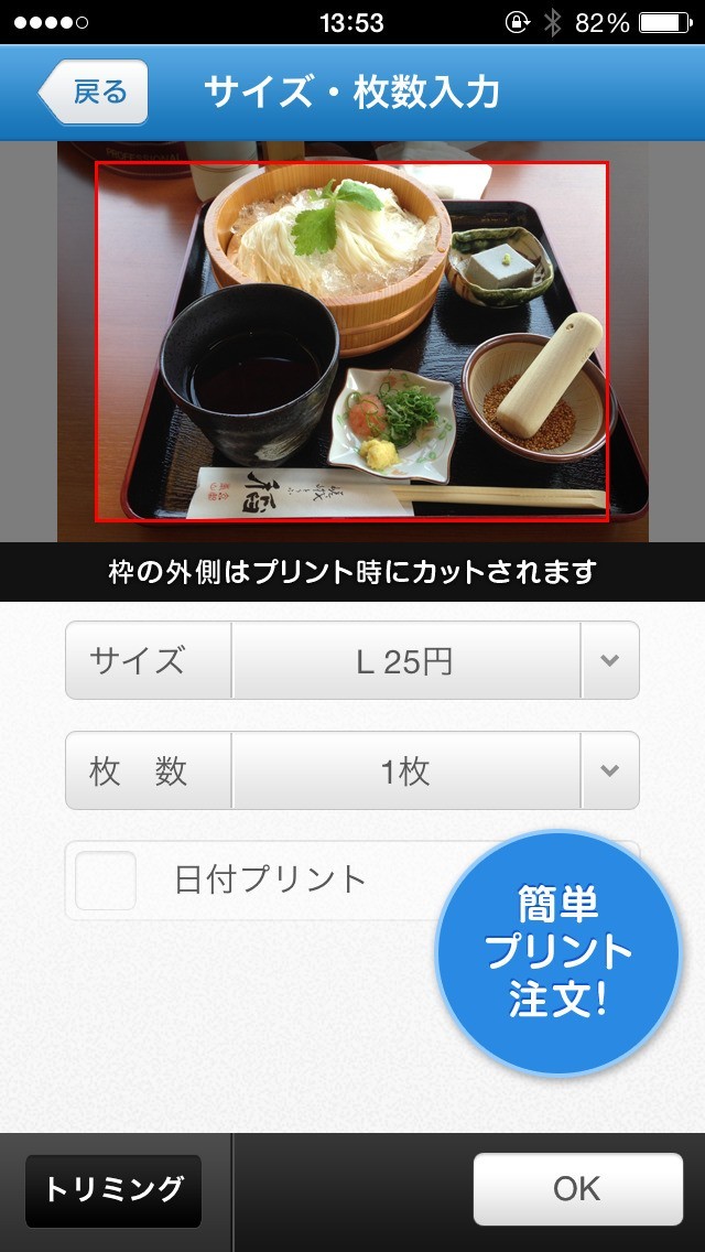 スマホ写真プリントのスクリーンショット