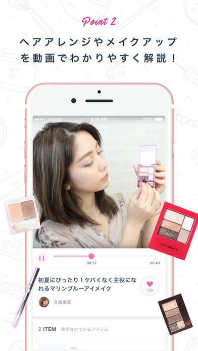 メイク・コスメ・ヘアアレンジ・ネイルなど、女性が気になる情報が動画でチェックできるアプリです。 全て無料で観れます。さらに、全て1分以内に観れるので、電車に乗っている時など、隙間時間におすすめです。 これで、メイク・コスメ・ヘアアレンジ・ネイルの最新情報をチェックしよう!