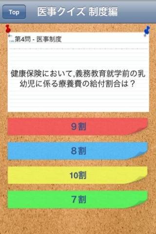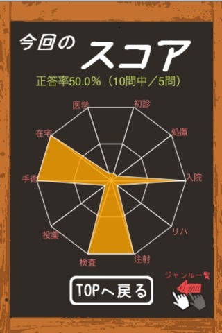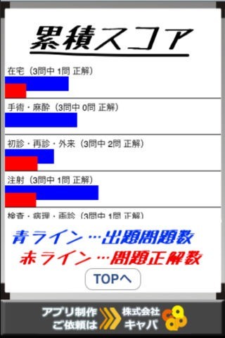 医療事務の学習が手軽にでき、マルバツの一問一答方式で解答するシンプルな操作性ら成績をグラフ化するスコア表示機能を搭載