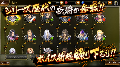 シリーズ歴代の武将が登場!好きな武将を集めて自分だけの部隊を作れる!