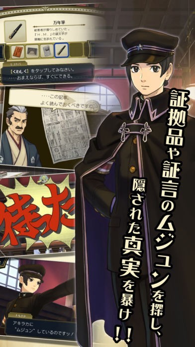 法廷バトルゲーム「逆転裁判」の続編がアプリで登場です!弁護士「成歩堂龍之介」が事件の謎を解き明かし真相に迫る逆転シリーズおなじみ「探偵パート」、「法廷パート」に加え「共同推理」、「陪審バトル」など、大抜群の遊びごたえ!前作では語られなかった新たな事件や謎にも挑戦します。大探偵シャーロック・ホームズと共に日本と英国をまたいだ大事件の謎を暴こう!